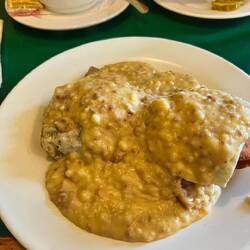 Als we 's avonds na een powernap op zoek gaan naar eten komen we uit bij de plaatselijk Grill, met op de menukaart Shrimp en Grits. Een lekkernij uit het zuidelijk deel van Amerika: een gele graanpap met kaas, daaroverheen een pittige jus en daarop gegrilde Garnalen in cajunkruiden. Oh, zo lekker.....plaatselijk biertje erbij en we sluiten de dag af.
