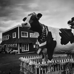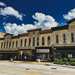 Toch nog even Coon Valley door, het nabij gelegen dorp. Een lange doorgaande straat, klassiek voor een gemiddeld Amerikaans dorp, met een serie losse gebouwtjes: een benzinestation, een drive-through pinautomaat, een uitvaartcentrum met aangrenzend een Grill&Saloon, een kaasfabriek, een wit houten kerkje, een market van de Amsih, een tuincentrumpje, een library ter ere van ene mijnheer Knutson, een advocatenkantoor, een tapijthandel en een paar snuisterijen winkeltjes, waaronder een hele grote hal waarin buurtgenoten hun eigen spulletjes, snoepgoed en antiek te koop aanbieden. Bij binnenkomst klinkt er vervormde kerstmuziek uit de (goedkope) boxjes. "Hi welcome...are you familiair with our store?" krast de caissière ons toe. Nee natuurlijk niet, dus volgt er een uitleg...."en achterin heb ik alvast een themahoekje met kerst gemaakt en om in de sfeer te komen alvast kerstmuziek aangezet". Tuurlijk, 't is 30 graden en wij komen gelijk in de kerstsfeer met onze korte broek en sandalen. En ze vertelt ook nog even dat het echt de moeite waard is om nog 20 kilometer door te rijden en de kustlijn van de Mississippi langs te rijden.