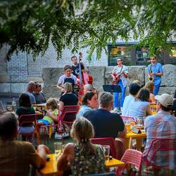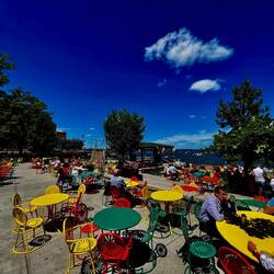 Er staat voor de ingang een lange rij. Iedereen heeft een tuinstoel op zijn rug. Ook wij. We kennen inmiddels onze pappenheimers: bij openluchtconcerten nemen Amerikanen allemaal hun tuinstoel en koelboxen mee. Alleen blijkt onze tuinstoel te groot. De rest wist dat en heeft een klein stoeltje bij zich. Wij gaan zonder stoel naar binnen (en huren binnen uiteindelijk een stoeltje). Daar staan hoog bejaarde vrijwilligers druk met hun armen te zwaairen om iedereen in het openluchttheater een plekje in te laten nemen. Alleen al de 80 jarige vrouw met kek speldje in haar dikke grijze haar, haar achterover hellend lichaam en haar komme reumahandjes die druk gebarend de bezoekersstroom in goede banen leidt, is de entreeprijs al waard.