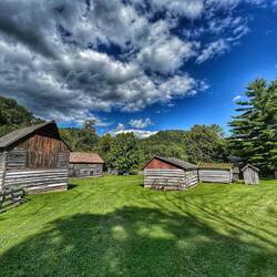 Bij terugkomst bij de 10 Noorse huisjes, schuurtjes en boerderijtjes stappen we nog maar even het visitorscentrum annex museum/kantoor/giftshop binnen. De directeur Lori (geeft na elke zin aan dat het alleen moeten doen als we er zin in hebben "If it's to your heart's content" en dat ze ons niet tot last wil zijn) zit keurig achter haar bureautje bij de ingang. Ze vraagt enthousiast hoe het met ons gaat, of het leuk was de wandeling en dat ze ons alles kan vertellen over het museum ("If it's to your heart's content"). Maar eerst een filmpje. We worden naar een grote filmzaal geloodst. Op de grote tv verschijnt wat computerbeeld. Lori geeft aan dat we een film krijgen over het park (wat we net helemaal doorgelopen zijn, dus veel nieuws kan het niet zijn). "Alleen als we het echt willen, (natuurlijk "If it's to your heart's content"). Hup de film gaat aan. Daar zitten we met z'n tweeën op de eerste rij van een geheel lege filmzaal naar een amateuristisch promofilmpje van het park te kijken. Gelukkig hadden ze voor het filmpje een drone gehuurd....bijna elk overzichts-shot was vliegend over de gebouwtjes, flink in en uit zoomend. Voor de rest zagen we veel vrijwilligers ijzer smeden, figuurtjes punniken, paard en wagen berijden, kleedje weven, broodje bakken en leuke schilderingen op stukjes stenen bordje maken. Heel leuk. Nooit eerder gezien.