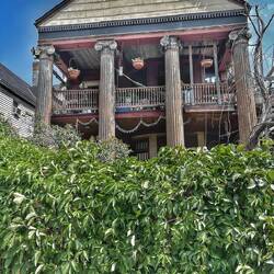 We lopen nog een half uur door en zijn bij ons ruilhuis. Komende 5 dagen mogen we hier vertoeven in ruil voor ons eigen huis. Een prachtig oud wit, houten victoriaans huis in de achtertuin van het Museum. Wij hebben de totale eerste etage tot onze beschikking. De binnenkant heeft een eclectische schilderbeurt gekregen. Dat wil zeggen, bijna elk plintje, deur of muur is een andere kleur geverfd. De meubels zijn net zo eclectisch. Groot filmscherm op de muur en in het eetgedelte staat een tafel waaraan je op stahoogte kunt eten. Het is heel ruim en heeft een prachtig balkon met muggenscreens aan de straatkant. De eigenaar heeft 2 fietsen voor ons geregeld, heeft de koekast vol gezet met lekkers (Cava, watermeloen, eieren) en een uitgebreide beschrijving gemaakt van de omgeving. Verwennerij.