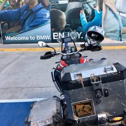 Last not least und um den Bezug zum letzten Bild herzustellen: Die Bikes bekommen bis morgen einen ordentlichen (und sicher sehr teuren) Service in der wirklich gigantischen BMW-Niederlassung, die in ihrer affektierten Gelecktheit in scharfem Kontrast zu unseren etwas mitgenommenen Bikes steht. Mitarbeiter und das gesamte Ambiente reihen sich nahtlos in die wunderbare Welt der BMW-Arroganz ein (da lobe ich mir doch meinen Mike Bike in der Schützenstraße in Solingen). Leider bauen die Münchner wirklich exzellente Motorräder, doch emotional ist die Markenauffassung von BMW an biedersten Klischees und Selbstverliebtheit nicht zu überbieten. Was wäre das für eine lohnende Aufgabe, Marketingansatz und Servicepersonal auf das technische Niveau der Bikes zu hieven?Meer informatie