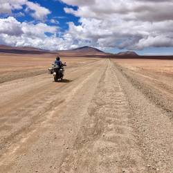 Der Salar de Uyuni ist mit über 10.000 qkm der größte Salzsee der Welt. Vielleicht ist er aber im Rahmen einer konzertierten Aktion der gesamten Fotoindustrie erdacht und - verborgen vor der Weltöffentlichkeit - heimlich umgesetzt worden. Denn was würde die Menschheit - vor allem die japanische, aber auch die lieben Motorradkollegen - eigentlich perspektivisch knipsen, wenn es dieses Naturschauspiel nicht gäbe?