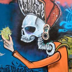 Zurück aus meinen Langstreckengedanken widme ich die Bilder 2 und 3 unserem Startort San Pedro, dieser zunächst nur staubig wirkenden Kleinstadt, die sich jedoch abends als lebendiger Backpacker-Treffpunkt herausstellt. Ich ziehe gegen 19.30 Uhr alleine los, treffe später noch Marc und wir beobachten mit Freude im Open-Air Lokal zunächst ein schön geschminktes Tangopaar, das mitten im Lokal seine Tanzkünste aufführt und anschließend den Hut herumgehen lässt. Und auch auf der Straße vor dem Lokal herrscht dank eines (keineswegs besonders virtuosen) Straßengitarristen und einiger enthusiastisch mitsingender Punks gute Stimmung.