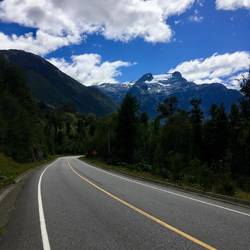 Etwas Wärme schadet nämlich nicht, denn wir sind mittlerweile wieder in Chile, und was in Puyuhuapi zunächst aussieht wie ein See, entpuppt sich als Fjord (mit Schildern, die den Fluchtweg im Falle eines Tsunamis anzeigen). Eine Fahrstrecke von 250 km liegt hinter uns, davon etwa die Hälfte auf Schotter. Denn wir folgen nun der (berühmten?) Carretera Austral, Ruta 7, einem Nord-Süd-Straßenprojekt, das unter Pinochet in den 70ern begonnen wurde. Der Süden Chiles war zu diesem Zeitpunkt kaum erschlossen und nur zu Wasser oder Luft erreichtbar. Ein Ende der Bauarbeiten ist nicht in Sicht, weitere Abschnitte sollen in den nächsten 25-30 Jahren entstehen. Dann soll auch vieles asphaltiert sein. Aber bis dahin bleibt die Carretera Austral ein großer Enduro-Spielplatz.