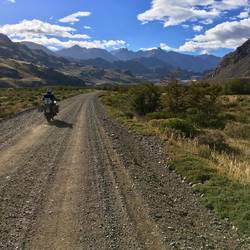 Immerhin: Bernd und Domenico sind wahre Männer und messen sich am Vorabend im Steakhouse beim Armdrücken. Am heutigen Morgen dann genießen wir zunächst ein paar schöne Kurven auf Asphalt, bis Bernds Bike umkippt, was ihn sein Windshield kostet. Bald danach geht die Carretera Austral wieder in Gravel über. Zunächst noch bei Sonnenschein, später dann bei 12 Grad und Regen. Da werden 150 km Schotterpiste lang, obwohl man tatsächlich im Grunde relativ problemlos mit 80 km/h über Schlaglöcher und Querrippen fliegen kann, es ab dieser Geschwindigkeit sogar wieder etwas bequemer auf dem Bike wird (Ihr erinnert Euch: "speed is your friend"). Man muss im Grunde nur zulassen, dass das Motorrad sich permanent eine eigene Spur sucht und dadurch immer etwas hin und her schwimmt. Kopfsache. Aber man gewöhnt sich daran.