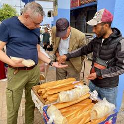 (Bert) Die Fähre von Tarifa braucht nur eine Stunde, dazu kommt eine halbe Stunde Grenzkontrolle mit unbarmherzig dreinblickenden Polizisten und nervös nach Drogen schnüffelnden Hunden. Da die Uhr zwei Stunden vorgestellt werden muss, rollen wir um 8.30 Uhr durch Tanger. Ziemlich allein, die dreispurigen Straßen sind wie leergefegt. Die anschließende Fahrt geht durchs Hinterland in Richtung Tetouan; da ich versehentlich “kurvenreiche Strecke” eingegeben habe, rollen wir durch unerwartet ärmliche Gegenden, schmutzige Dörfer und an kargen Feldern vorbei, und zwar mit geringer Geschwindigkeit. Dafür sorgen häufige Polizeikontrollen (mindestens zehn!) und allerlei Vierbeiner, die gerne am Straßenrand angebunden werden, wobei nicht immer klar ist, wie kurz oder lang die Leine ist. ... Es dauert lange, bis wir ein paar Menschen sehen, und wir nutzen die erste Gelegenheit, um uns mit dem vermeintlich Nötigsten einzudecken. Doch es ist nicht viel, denn der junge Mann in seinem Mini-Laden weist uns darauf hin, dass wir die gekauften Datteln nicht essen dürfen: Ramadan! Auch unsere Träume von netten Teestuben am Meer mit süßen, fettigen Teilchen platzen. Wo sind denn hier alle? So bleibt es vorerst bei Wasser und einer Handvoll Datteln. ... In Chefchouen angekommen, der - wie man auf den Bildern sieht - “blauen” Stadt, fahren wir schnurstracks zum Souk, kaufen für unglaublich wenig Geld etwas Brot, stellen fest, dass hier niemand Kreditkarten will und auch unsere extra mitgenommenen Dollarscheine eher Ratlosigkeit als Freude auslösen, so dass wir reumütig Dollar in Dirham umtauschen, damit aber wieder flüssig sind. Das Abendessen (Tajine) auf dem zentralen Platz inmitten der Medina entschädigt für unsere unfreiwillige Fastenkur. Und auch die Marokkaner dürfen jetzt, da es Abend ist, wieder etwas essen: Zunächst sitzen sie noch untätig vor den Essensbergen, doch der Mujezin erlöst sie schließlich und die Hungerspiele haben für alle ein Ende.Read more