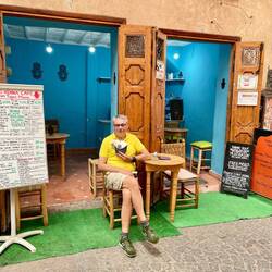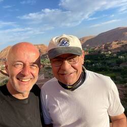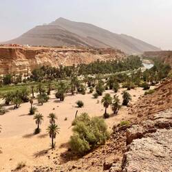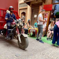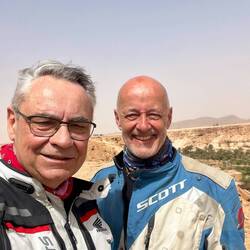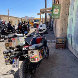 (Bert) Wenn der Guide das morgendliche Fahrerbriefing mit den Worten einleitet: „Wir fahren eine Strecke, die ich auch noch nicht gefahren bin und ich weiß nicht, wie weit wir kommen“, dann kann das vieles bedeuten. Heute führt es zu einem guten Ende, denn der Schlenker in ein vergessenes Tal in Richtung einer Kupfermine erweist sich als lohnend und die sich anschließende Naturstraße als gut fahrbar. Gleichwohl beruhigt es, dass Hassan immer irgendwie in der Nähe ist, denn die Motorräder werden ordentlich durchgeschüttelt. Exkurs und Insiderhinweis an die mitlesenden Bikerfreunde, die vielleicht einmal Ähnliches unternehmen wollen (Serge!): der von mir gewählte Kompromissreifen Onroad/Offroad Michelin Anakee ist für Schotter suboptimal, der Heidenau Scout macht in Sachen „gravel travel“ einen signifikant besseren Job. … Aber zurück zum Thema: In der Minenstadt Baida werden wir - nicht zum ersten Mal - von Kindern umringt; vermutlich sind wir der Tages-, vielleicht sogar der Wochenhöhepunkt in diesem Örtchen am Rande des Universums. Norbert fragt die Mädchen sicherheitshalber ein paar englische Vokabeln ab, mit ganz passablen Ergebnissen, und einige der Jungs wollen sich - wenn ich es richtig verstehe - auf Facebook mit uns verbinden … Während der Kaffeepause am Vormittag verbünde ich mich mit dem sehr sympathischen neuen Bikerfreund Markus aus der Schweiz. Wir absentieren uns von der Gruppe und nutzen die Gelegenheit, die Kasbah Oulad Osthmane von innen zu besichtigen. Darin befindet sich ein zunächst nicht erkennbares Hotel. Natürlich gehört die Anlage einem Seitenarm der marokkanischen Königsfamilie, wie uns der Manager erklärt. Die Festung (eine von vielen!) ist aus einem Lehm-Stroh-Gemisch gebacken, das sich mit dem Fingernagel abkratzen lässt, aber dennoch wundersamer Weise schon seit dem 18. Jahrhundert existiert. Für 40 Euro pro DZ inkl. Frühstück könnte man hier wie in 1001 Nacht wohnen. Ein wenig schade, dass unsere Quartiere in der Regel einen deutlich niedrigeren Standard aufweisen. Wir werden auf einen Orangensaft eingeladen, für den wir gleichwohl 50 Dirham auf den Tisch legen, was vermutlich angemessen ist, denn in freundlicher Stimmung verabschieden wir uns und eilen zusammen mit dem auf uns wartenden Norbert der Gruppe hinterher, die bereits in Richtung Agdz aufgebrochen ist. … Wir übernachten im unaussprechlichen Foum Zguid. Der Parkplatz des Wüstenhotels Bab Rimal gleicht einer Freiluftausstellung cineastischer Fantasiefahrzeuge. Doch wenige Schritte weiter gelange ich bei einem kleinen Abendspaziergang wieder in eine ganz reale marokkanische Dorfszenerie, die man sich bei völliger Lautlosigkeit und angenehmen 23 Grad vorstellen muss.Read more