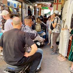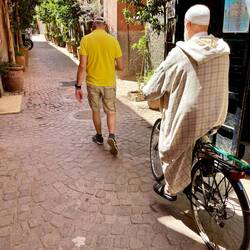 (Bert) Der Vormittag verläuft anders als geplant. Kurzfristig entscheiden wir uns für das Museum von Yves Saint Laurent, der - noch ziemlich am Anfang seiner Karriere - sich in Marokko inspirieren ließ. Ein sehr florale Kollektion entstand, die man leider nur live sehen kann - Fotografieren verboten. Trotzdem: Das ikonische Helmut-Newton-Bild schmuggle ich in diesen Blog. Ein 10-Minuten-Film im Museumskino zum Leben und zum Werk des französischen Designers macht den Besuch am Ende lohnend. Die auf Einlass wartende Riesenschlange vor dem YSL-Garten („Jardin Majorelle“) hält uns allerdings von einem Besuch ab.Read more
