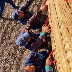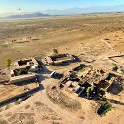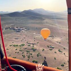 (Bert) 1783 in Versailles: Mit den drei ersten Fluggästen Hammel, Hahn und Ente beweisen die Brüder Montgolfiere ihrem König (und auch Marie-Antoinette) in Versaille, dass man in einem „Luftball“ überleben kann. Die Ballonfahrten in Marrakesch sind da zweifellos sicherer, unser Hot-Air-Ballooner Simo hat die „pilot driver license“. Es ist ein Erlebnis der Kategorie „10 von 10 Punkten“. Zwar klappt die Orga nicht wirklich, denn wir werden eine Stunde vor dem verabredeten Zeitpunkt vom Hotel abgeholt und taumeln deshalb schlaftrunken und halb angezogen ins Taxi. Aber die Schwebefahrt selbst mit Blick auf das Atlasgebirge und in verzaubernder Schwerelosigkeit bringt Gänsehaut pur. Zumal die Musikauswahl unseres Piloten wunderbar zu der gleitenden Fortbewegung der Montgolfiere passt. Drei seiner Songs findet ihr in der angehängten Playlist („7 Seconds“ war schon vor 30 Jahren sensationell). Fazit: Aus dem Ballon betrachtet wird die Welt nicht nur leise, sondern auch klein. Aber sie bleibt einfach … überwältigend schön!