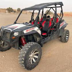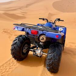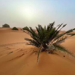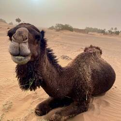 (Bert) Die Sahara ist ungefähr 26-mal so groß wie Deutschland. Hier in Erg Chebbi fängt sie an. Man dürfe den Sonnenaufgang nicht versäumen, sagen alle. Norbert dreht sich noch einmal um und ich stapfe um 6:20 Uhr in der Dämmerung mit Handykompass in Richtung Osten los. Nach etwa 1 km komme ich zu einer Art Parkplatz für Dromedare, die vermutlich auf ihren touristischen Tageseinsatz warten. Es ist so still, dass ihr Wiederkäuen das einzige Geräusch ist. Wer ein Haustier möchte, das Ruhe ausstrahlt, wäre mit einem Dromedar gut beraten. Dann verliert sich der Weg, letzte Hühnerställe und Häuser bleiben zurück und es ist zauberhaft schön. Durch den Dunst bleibt alles eher farblos; einige der mitreisenden Biker, die bereits eine Stunde früher mit Stirnlampe und Rucksack losgezogen sind, werden dies später beklagen. Warum sie das so sehen, ist mir ein Rätsel, denn es ist wirklich grandios als kleines Sandkorn mit all den anderen Sandkörnern in Dünenuniversum der völligen Stille sein zu dürfen. Nur ein schwarzer Käfer kreuzt meinen Weg und macht zunächst einen einsamen und orientierungslosen Eindruck, aber dennoch scheinen er und seine Spezies hier bestens zurecht zu kommen. … Zurück im Hotel schließe ich mich der kleinen Untergruppe der Quadfahrer an. Nach all der Stille soll es jetzt doch ein wenig knattern, zumal sich ab 7:30 zunehmend eine lustige Auswahl an sinnfreien Fahrzeugen in Richtung Dünen bewegt. Und klar, die Guides haben ein Surfbrett mit, nach 5 Metern geradeaus endet das Ganze zwingend in einer Staubwolke.Read more
