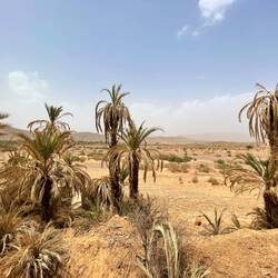 (Bert) Google Maps meint, man könne von Zagora aus in 32 Tagen nach Timbuktu laufen. Für die etwa 3.000 km durch die Wüste scheint mir das ambitioniert. Auch 52 Tage könnten sportlich sein. Die wandgemalte Nachbildung des mittlerweile nicht mehr vorhandenen - laut lonely planet einstmals ikonischen - Schildes verweist auf die Lage Zagoras als frühere Durchgangsstadt in den Süden. Von hier aus zogen 1591 die damals in Marokko herrschenden Saadier los, um Timbuktu zu erobern, und auch später kam wohl die eine oder andere Karawane vorbei. So wie wir heute, unsere kleine Motorradkarawane … Der Start in Erg Chebbi ist von ungewohnten und ungewöhnlichen Wetterverhältnissen geprägt. Der nächtliche Sturm verteilt den Sand in jede Ritze unseres Zimmers und pudert die Bikes. Hassan (Ihr wisst: die gute Seele) setzt unter Zuhilfenahme der marokkanischen Version von WD40 den Kippschalter für meinen Anlasser wieder in Gang, der sich mit Sand zugesetzt hat. Auch die ersten 30 Fahrkilometer sind speziell, starker Seitenwind bläst kleine Dünen auf die Straße und aktiviert unsere Nackenmuskulatur. Sogar ein kurzer Regenschauer und 12 Grad sind in der Wüste möglich, wie wir nach weiteren 20 km lernen. …. Während der letzten 60 km folgen wir dem Draatal. Es wird gesäumt von Dattelpalmen und den landestypischen Festungen (“Kasbahs“). Unser heutiges Hotel, das Palais Asma in Zagora, besticht durch seine dekorative Buntheit, aber sonst durch nicht viel. Die nach uns eintreffenden osteuropäischen Bustouristen lassen weder für die abendliche Küche noch für die Abendgrobe Höhepunkte erwarten. Und so ist es dann auch.Read more