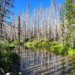Tina, man sieht so viele dürre Bäume. Ist dort auch der Borkenkäfer oder der Waldbrand schuld? Viele Grüße Papa