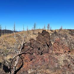 Lava from here covered a large area… there are many caves here. I spent the night and walked up Schonchin Butte