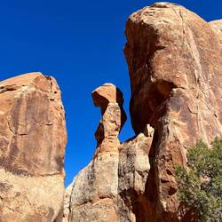 More red rocks - famous for forming arches this time. The rock erodes from walls into „fins“, then arches or columns etc. The hike through Devil‘s Garden required climbing up and down fins orRead more
