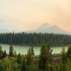 I spent three hours in Salmon Arm for more birdwatching watching in the morning. Driving day in the afternoon to make my way to Banff. The fire smoke impacts the view of the grandios mountain scenery…