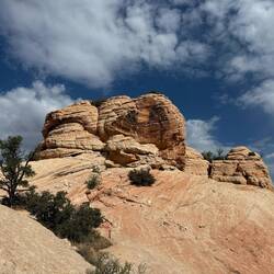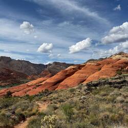 I spent the night north of St. George close to Snow Canyon State Park because I plan to hike The Vortex in the morning. Not a very long hike, but a beautiful area of red and white sandstoneLeggi altro