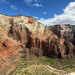 After heavy rain last night, the weather today was better than expect. I hiked the Watchman Trail before taking my bike to ride into Zion Canyon. Second hike of the day up to Scout’s Lookout a bitLeggi altro