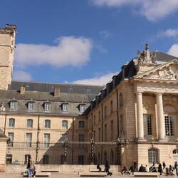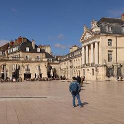 Für ein Frühstück war es inzwischen schon zu spät, für Mittagessen aber noch zu früh. So haben wir es uns am "Place François Rude" mit einem Kaffee in der Sonne gemütlich gemacht.