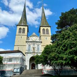 Das Wetter meinte es heute sehr gut mit uns. Am Anfang zwar noch etwas frisch, aber überwiegend sonnig. So macht die Stadtbesichtigung Spaß. Zuerst die Jesuitenkirche, dann die Museggmauer (äußereもっと詳しく