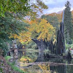 Auf der Fahrt nach Bad Muskau bewunderten wir noch einmal die Rakotzbrücke, diesmal sogar mit etwas blauem Himmel.