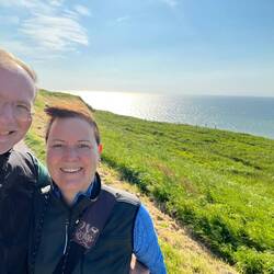 Heute ging es ein Stück auf dem Küstenwanderweg GR 21 an der Alabasterküste entlang. Es waren großartige Ein- und Ausblicke, lediglich der Wind war anstrengend.