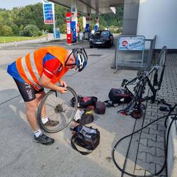 Heute nachmittag um halb drei starteten wir in Salzburg bei 32° und gefühlten 50°. Die Sonne knallte gnadenlos auf uns nieder und der Veloweg, dem man so nicht sagen kann sondern der den Titel Bachbett verdient und 35 km lang war, forderte uns und die Pneus enorm. Dazu kam, dass es auf der ganzen Strecke grade mal ein Café hatte, wo wir ein Bier (ich trinke ja nur Bier, wenn ich kurz vor dem verdursten bin) bekommen haben. Weiter ging das Bachbett, ohne auch nur einen Hauch von Einkehrmöglichkeit. Einen Radlertreff gab es, aber natürlich war der geschlossen😡. Endlich kam dann die Brücke über die Salzach nach Tittmonig, wo wir dachten, jetzt geht es wunderbar der Salzach entlang. Denkste - eine Steigung, lang und steil führte uns höher und höher, es schien kein Ende zu nehmen. Irgendwann, so etwa 10 km vor dem Ziel, ich hatte immer wieder Muskelkrämpfe, schickte ich Theo voraus ins Hotel. Und dann nahm ich es sehr gemütlich, nahm die richtige Abzweigung nach Burghausen Altstadt und es ging mir immer besser. Theo verpasste anscheinend die Abzweigung und musste noch einen grossen Bogen fahren, sodass ich nur kurz nach ihm im Hotel war. Und endlich gab es Wasser🤪, eine Dusche und dann noch hausgemachte Limonade. Ausser dass Theo einen Palatschinken und ich eine Bouillon genossen, hatten wir gar keinen Hunger, obwohl wir auch nichts zu Mittag gehabt hatten. Und so haben wir die ersten 58km am Nachmittag hinter uns gebracht. Jetzt werden erst mal die Knochen wieder geordnet und der Kopf verlangt nach Schlaf. Allseits eine gute Nacht🌝🙋‍♀️Leia mais