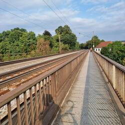 Heute fuhren wir die verkürzte Strecke wie angekündigt. Es war auch wieder sehr heiss, auf dem Radweg knallte die Sonne auf den Beton - einfach sehr, sehr mühsam zum fahren. Besonders, wenn man dann zuerst noch auf der falschen Donauseite fährt und nach einigen Kilometern umkehren muss😨. Wenigstens kamen wir dann in den Genuss eines unglaublichen Puffs mit Autos, die sich über die Brücke stauten, etliche Kreuzfahrtschiffe mit weiss nicht wievielen E-Bikes drauf und einem riesen Fest. Es war schliesslich Himmelfahrt und ich glaube, keiner hat in Bayern gearbeitet. Sogar die Restaurants waren zum Teil geschlossen. Und dabei hatten wir so Durst🤣. Schlussendlich fanden wir dann aber den richtigen Donauradweg und radelten mehr oder weniger munter dahin. Solange, bis der Durst wieder überhand nahm. Aber ein Besitzer einer (geschlossenen) Besenbeiz zeigte uns ein kleines Restaurant am Hafen. Da konnten wir den inneren Brand und die leeren Flaschen wieder auffüllen. Nur hätten wir nachher wieder ein kleines Stück (etwa 500m) zurückfahren sollen und wären dann wieder auf den geteerten Radweg gekommen. Stattdessen zeigte ein Schild einen Naturweg an, dem wir in gutem Glauben folgten. Das war der Horror - zuerst kamen Autos, deren junge Fahrer und Insassen baden gehen wollten, dann mussten wir ein grosses Stück auf der Wiese fahren und dann ging es wieder dem Schotterweg mit viel Staub weiter, bis wir dann an die Kreuzung mit dem geteerten Radweg kamen. Na ja, jetzt hatten wir auch das hinter uns. Und natürlich hatten wir wieder Durst. Zu unserem Glück kam dann irgendwann ein kleines Dörfchen und die hatten Feuerwehrfest mit einem tollen Musiker💃, Bier🍺 und Steckerlfisch. So einen wollte ich gerne haben, aber seit wir auf Tour sind, essen wir extrem wenig und teilen uns meistens etwas, wobei wir bis jetzt das Mittagessen immer ausgelassen haben. Also blieb der Steckerlfisch auf dem Grill🫢. Theo hätte noch stundenlang sitzen bleiben können, aber die Hitze drückte immer mehr, sodass wir es vorzogen, auf dem kochenden Beton weiterzufahren. Irgendwann nach dem Mittag kamen wir dann in Deggendorf an 😵‍💫 - zum Glück, checkten ein und nach der Dusche gab es erst einmal ein Nickerchen im letzten Zimmer, das das Hotel hatte. Das Zimmer liegt im 4. Stock, bei der Dachschräge muss man aufpassen, dass man nicht dauernd der Kopf anschlägt, durch das kleine Dachfenster schaut der Kirchturm rein - ach wie schön und laut werden die Glocken läuten - aber egal, Hauptsache, wir haben ein Zimmer🫣. Wir haben nämlich andere Touristen gesehen, die verzweifelt auf der Suche nach einer Unterkunft waren. Später dann meldete sich wieder der 🥛🍺 und wir entspannten im enorm heissen Biergarten und amüsierten uns über die E-Bike Fahrer, die total erschlagen eintrafen. Wir haben festgestellt, dass 95% E-Bike Fahrer sind, 4% Rennradfahrer und 1% normale Bioradler - nämlich wir🤔. Nach drei Stunden relaxen hatten wir nun doch ein bisschen Hunger (Mittagessen fiel heute ja auch aus). Theo bekam seine heissgeliebten Käsespätzli. Eine so grosse Portion hätte locker für zwei gereicht und ich ass in Anlehnung an unsere Wohnzeit in Wien Backhendl mit Gurken/Kartoffelsalat. Nun ist also auch der heutige Bericht geschrieben. Ach ja, für morgen sagt das hiesige Meteo Bewölkung und Regen voraus. Wäre das schön😌. Wohin wir morgen fahren, ist wetterabhängig. Nur - Regen stört uns nicht, wir sind wasserdicht und würden Regen beim Fahren geniessen👍. Und übrigens, schaut, wohin uns die Radwegverantwortlichen mit unseren schweren Rädern und Gepäck schicken😡Leia mais