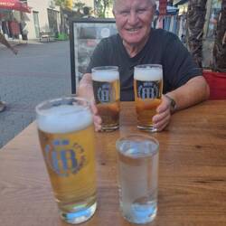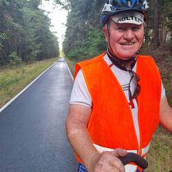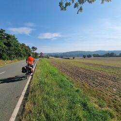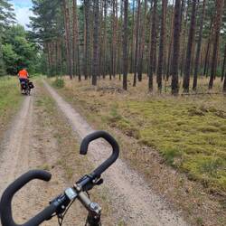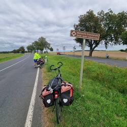 Also, wir fuhren los, wussten, es geht bergauf und es ging bergauf. 14 km steigen🥵. Aber so früh am Morgen, ausgeruht und frisch, war das kein Problem. Nach dem obligaten Kaffee- und Zuckerhalt - ein Liebesknochen oder Eclair, vornehm gesagt, doppelt so gross wie unsere in der Schweiz, kamen wir auf Touren. Ein netter Herr, der in der offenbar einzigen Bäckerei im Ort seine Brötchen kaufte, offerierte uns, dass wir beim Vorbeifahren bei ihm läuten sollten, falls wir in der Bäckerei kein Wasser erhalten würden. Er würde uns alles geben, was wir möchten. Wir wären schliesslich Gäste von seinem Land😄. Wir fuhren dann aber an seinem Haus vorbei, der Zucker vom Eclair gab Schub😄. Dann kamen wir auf den Oder Radweg und wir können Euch sagen, eine Gerade, einfach eine Gerade - fast schon langweilig! 34 km konnten wir darauf radeln. Der Wind war am Morgen zwar schon da, aber noch nicht sehr stark, erst gegen Mittag drehten die oben den Schalter immer höher und zwar so stark, dass wir die Lenker mit aller Kraft halten mussten, damit es uns nicht in den Graben wehte. Nach den 58 km ging es noch acht Kilometer bis ins Dorf Letschin. Dort machten wir Mittagshalt in einem Restaurant Landhaus. Ich kann Euch sagen, wenn dieses Restaurant nicht über 1000 km weit entfernt wäre, das würde unsere Stammbeiz. So gut und wunderschön haben wir bis jetzt auf unserer Reise nie gegessen. Leider hatten wir noch 30 km vor uns bis zum Ziel, sodass wir uns wieder auf den Weg machten, zwar flach wie eine Flunder dafür mit sehr heftigem Gegenwind, teils von vorne, meistens von leicht links. Es war wirklich ein Kampf gegen diesen Wind. Ohne wären wir eine Stunde früher im Kurort😂 Bad Freienwalde gewesen. Aber nachdem die Ortstafel bereits passiert war, das Dorf allerdings sehr langgestreckt war, wir beim Chinesen vorbeifuhren😡 und das Hotel immer noch nicht in Sicht war, kamen wir endlich zum Hauptplatz - schrecklich, eine grosse Baustelle und alles gesperrt. Wir kämpften uns wieder einmal durch Sand und Dreck und bald kam das Hotel in Sicht. Nach der Begrüssung vom Besitzer und der Forderung, dass Theo ihm ein Bier bezahlen müsse 😆, weil er den Beizer, der heute frei gehabt hätte, morgens um halb acht aus dem Bett geholt hatte, konnten wir unsere Velos versorgen und die beiden kickten ein Bier, während ich mich im Zimmer einrichtete. So sind wir also heute in einem Kurort und bereiten uns seelisch auf die morgige Tour und den Wind vor. Es geht nun in Riesenschritten gegen die Ostsee.