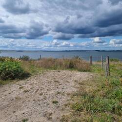 Heute früh am Morgen starteten wir in Wismar. Vorbei ging es am Hafen, wo gerade ein Kreuzfahrtschiff, so gross wie ein Hochhaus, zum überholen vor Anker lag. Der Weg war recht gut, wir kamen flüssig vorwärts und genehmigten uns nach 20 km einen Kaffee und heute keinen Zucker- sondern einen Proteinschub. Wen es wunder nimmt, was denn Theo jeweils isst - ein Croissant. Das reicht ihm. Für mich war das Eierbrötchen auch genug. Weiter ging es dann Richtung Lübeck - jedenfalls hatten wir das vor. Eine Hügelkette auf der linken Seite, die Ostsee rechts - welche Route sollten wir wählen? Hügelkette, Funkturm - ach was, da fahren wir doch auf dem Ostseeradweg dem Meer entlang, ist ja alles flach. Und die 25 km sind für uns ein Klacks. Ja denkste, von wegen flach! Bis zum Ostseebad Boltenhagen war die Strecke nur leicht gewellt, allerdings wurden wir wieder auf einen Naturweg geleitet, der uns einmal mehr durchschüttelte. Aber dann kamen wir in Boltenhagen an. Boltenhagen liegt zwischen den alten Hansestädten Wismar und Lübeck. Ein über 5 Kilometer langer, steinfreier, feinsandiger Strand wechselt von einer Flachküste zu einer Steilküste.