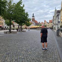 Heute fuhren wir nach einer sehr herzlichen Verabschiedung des Hoteldirektors bereits um 7 Uhr vom Steigenberger Hotel weg. Aufs Frühstück haben wir wie immer verzichtet. Ausser dem arbeitenden Volk und uns beiden war die Stadt wirklich menschenleer - die Touristen schnarchten noch immer in ihren Betten. Auf der Brücke war dann kurz ein Disput zwischen Polizei und Lieferwagenfahrer, aber wir konnten ohne Probleme passieren. Die Sicht auf Elbe war etwas getrübt durch schwarze Wolken, die uns aber den ganzen Tag immer wieder begleiteten. Vom Outdoor Active wussten wir, dass wir am Anfang zuerst etwa 8,5 km aufwärts steigen mussten. Na, dann machen wir das halt! Nachher wurde es besser und ab und zu konnten wir auf der Strasse fahren, meistens mussten wir aber auf den Radweg, der sich mit feinem Teerbelag und grauslichem Schotter abwechselte. Mangels Frühstück kehrten wir nach einer Stunde in einer Bäckerei ein. Leider konnte ich mich wieder nicht zurückhalten und ass zu der heissen Schokolade noch etwas dem Bienenstich ähnlichen Plunder. Zuckerschock pur und schlechtes Gewissen dazu🤔. Ich wollte dann eigentlich den ganzen Tag nichts mehr essen, aber wie heisst es: der Mensch ist stark, aber das Fleisch ist schwach🤫. Also, wir fuhren weiter, nachdem uns die Verkäuferin in der Bäckerei versichert hatte, dass alles flach sei. Flach wie ein Flunder? Sicher nicht! Aber nicht mehr so hügelig wie bis anhin. Es ging meistens flott voran, unser Mittagsziel war Senftenberg. Dazwischen mussten wir immer wieder Umwege fahren und vorallem den Radweg immer wieder suchen. In Senftenberg wollten wir Handy aufladen und etwas zu Mittag essen. Das erste Restaurant war eine Vietnamese. Ich freute mich schon darauf, aber: keine Chance. Mehr als pumpenvoll. So fuhren wir weiter in der Stadt und kamen zu einem tollen Italiener, der uns ausgezeichnete Spaghetti AOP servierte. Danach ging es weiter, immer noch keine Spur von Cottbus, dafür ein kilometerlanger Waldweg, gekennzeichnet als Radweg. Steine, Sand, Holz auf dem Weg und eine ungenaue Spur und da mussten wir fahren. Ich erzähle Euch jetzt nicht, wie oft wir geflucht haben! Es war kaum zu glauben. Aber irgendwann kamen wir dann wieder auf geteertes Gelände und nach einem fast unverzeihlichem Faux-Pas mit Abzweigung auf die Autobahn und schnellem Wenden fanden wir dann doch die Nebenstrasse nach Cottbus. Es darf nicht vergessen werden, dass wir vom Morgen an immer wieder mit starken Windböen und Gegenwind von 30 bis 50 kmh zu kämpfen hatten. Klar ist, wenn man 24 Windräder auf einem Hügel zählt, muss der Radfahrer dort zu diesen Windrädern rauf und folglich weht der Wind auch stark! Übrigens, als wir in Senftenberg die Stadt verliessen, flogen vier Helikopter der Bundeswehr schön hintereinander die Grenze zu Polen ab. Man ist hier ganz nahe der polnischen Grenze und seit Freund Putin so agiert, ist man sehr aufmerksam. Irgendwann kamen wir dann in Cottbus an, kämpften uns durch den Verkehr und nach 115 km langten wir beim Hotel an. Die Altstadt von Cottbus ist nicht berauschend, aber immerhin konnten wir unseren Durst löschen. Der Hunger hatte sich in der Zwischenzeit verflüchtigt.Leia mais