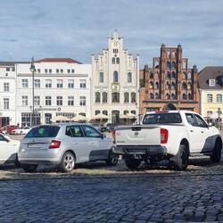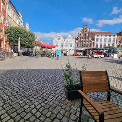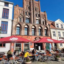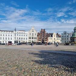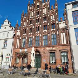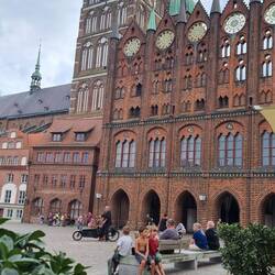 Heute morgen in Prenzlau. Frühstück gab es ab halb sieben - sehr gut für uns. Wir waren auch diese Nacht wieder gut beschützt - als wir zum Frühstück aus dem Zimmer traten, kam von gegenüber auch gleich die Polizei raus. Das ist uns aufgefallen, viele Polizisten und Polizistinnen logieren in teuren Hotels. Dazu waren im Speisesaal noch Soldaten des deutschen Bundesheers, die ihren Zmorge genossen wie wir auch. Na, bald ging es weiter, es war nicht mehr so kalt wie die Tage zuvor. Aber Hügelzüge hatte es trotzdem noch, wenn auch nicht mehr so heftig. Der Wind hatte auch Erbarmen mit uns und blies nur schwach, sodass wir recht gut vorwärts kamen. Nach einigen Stunden, von Ferdinandshof an wurde es dann immer flacher. Unertrügliches Zeichen: keine Windräder mehr, dafür riesige Flächen mit Solaranlagen. Aber zu früh gefreut - bald sah man in der Ferne wieder Windräder und das hiess, da müssen wir wieder rauf. Ich hasse inzwischen Antennen und Windräder, denn genau wie in Amerika, wo man ganz weit vorne eine Antenne auf einem Hügel sieht und weiss, dort hinauf muss man, genau so ist es hier mit Windrädern. Und dann kommt noch dazu, dass wenn die Windräder drehen, es folgedessen auch Wind hat. Aber es lief sehr gut, Pausen gab es gezwungenermassen nur am Strassenrand, denn Gasthäuser sind in vielen Dörfern gar nicht vorhanden. Was auch zu sagen ist, ist, dass die Lastwagenfahrer sich viel rücksichtsvoller verhalten als gewisse Autofahrer. Das sind so Egoisten, rasen an einem vorbei, einer fuhr etwa mit 20 cm Abstand an mir vorbei. Ich dachte schon, mein letztes Stündlein hätte geschlagen. Es gibt Autofahrer, die fahren vorsichtig, warten, bis es keinen Gegenverkehr mehr hat, andere haben nicht eine halbe Sekunde Zeit den Fuss etwas vom Gas zu nehmen! Was auch interessant ist, da zeigte ein offizieller Wegweiser 11 km bis Greifswald, nach etwa zwei Kilometern der nächste 18 km - kein Verlass auf diese Angaben. Aber ich merke mir immer die Kilometeranzeige beim Start, rechne die Distanz dazu und darauf kann man sich dann wirklich verlassen. Also, irgendwann kam dann auch unser heutiges Ziel Greifswald in Sicht. Es ist einfach verrückt, von der Ortstafel bis mitten ins Zentrum sind überall noch einige Distanzen zurückzulegen. Dazu nach Möglichkeit noch bergauf! Hier in Greifswald waren es ganze 5 km, bis wir wirklich im Zentrum waren und das Hotel beziehen konnten. Zimmer natürlich wieder oben unterm Dach, 5 Treppen hoch und kein Lift! Dafür wurden wir später, beim Durst löschen, belohnt mit einem ganz tollen Kern, einem wunderbaren Dom und per Zufall entdeckten wir auch noch am Fluss Ryck unten etliche Schiffe, umfunktioniert in Restaurants. Ach, es schaukelte so herrlich🤢.Leia mais