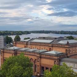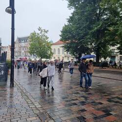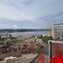 Wir starteten heute morgen ziemlich früh, denn im Radio hörten wir, dass vorallem in Rostock Regen und Gewitter zu erwarten seien. Zwar hatte uns unser Freund eine Route "oben herum" empfohlen, da er diese vor etlichen Jahren mal gemacht hatte und sie traumhaft fand. Das wären 133 km gewesen. Angesichts der oben erwähnten Wettervorhersage entschieden wir uns dann, keinen Bogen sondern ziemlich gerade durchs Land Richtung Rostock zu fahren. Das waren ganz viele Kilometer weniger und zum Glück hatten wir uns so entschieden. Denn die früheren Strassen waren gemäss einer Dame, einer Baslerin, die in einem Tourismusbüro arbeitet und seit 7 Jahren hier oben wohnt, zum Teil gesperrt, weil die Landschaft inzwischen Moorlandschaft sei. Wir fuhren also bis Graal-Müritz und wollten dann auf den Ostsee Radweg. Aber auch hier - zuerst ganz ok, dann aber 5,5 km durch Wald nur mit Naturstrasse und grossen Pfützen, was ich besonders zu spüren bekam, da mir gestern das vordere Schutzblech wegen diesen Grümpelstrassen abgebrochen und abgefallen war. Und es war eh recht grau und trüb, der Dreck klebte an einem und das Geholper ging weiter🥵. Also fanden wir uns damit ab. Weniger konnte ich mich damit abfinden, dass der Wald zwar toll aussah, aber kein einziger Pilz zu sehen war🍄‍🟫😭. Irgendwann kamen wir dann aber endlich wieder auf einen einigermassen gut geteerten Radweg, auf dem wir bis Warnemüde fahren konnten. Zu unserem Glück erwischten wir grad noch die Fähre, die mit Hunderten von Touristen nach Warnemünde übersetzte. Aber echt - es war ein Graus🤪. So viele Leute, so ein Gewusel - wir machten, dass wir ganz schnell aus diesen Touris herauskamen. Etwas abseits assen wir dann zu Mittag. Ich hatte eine ganz feine Fischsuppe, von der hätte ich noch einen Eimer voll essen mögen (aber nur einen kleinen Eimer). Weiter ging es dann Richtung Rostock, der Himmel wurde immer schwärzer und wir immer schneller😝. Lebensgefährlich, wie wir mehrmals Zubringer - und Abbieger der Autobahn überqueren mussten. Aber auch das überstanden wir zum Glück unbeschadet und wie könnte es anders sein, erreichten wir nach einer längeren Steigung unser Hotel. Dieses Hotel verfügt über eine Rooftop-Bar, die wir nach einem supertollen Nachtessen im Hopfenkeller (kann jedermann nur empfohlen werden) natürlich noch besuchen mussten, um den Blick von oben auf Rostock schweifen zu lassen. Und übrigens, der Regen kam dann wie angesagt, kaum dass wir das Hotel erreicht hatten!Leia mais