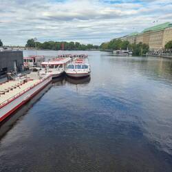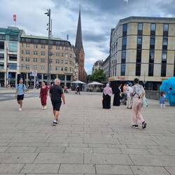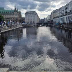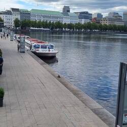 Heute verliessen wir die Stadt Lübeck, ohne auch nur ein einziges Stück Marzipan gegessen zu haben, obwohl wir beide Marzipan sehr lieben. Der Badesee, an dessen Ufer unser Hotel war, lag ruhig da. Im Hotel selber war es totenstill, alle schliefen noch. Wir packten unsere Taschen auf die Räder und ohne Verkehr kamen wir sehr gut aus der Stadt heraus. Es ging ganz passabel weiter, die Stimmung an einem solchen Morgen ist toll. Herrlich ruhig, wenig bis fast keinen Verkehr, kühle Temperaturen und ein moderater Radweg - da macht es richtig Freude zum radeln. Etwas getrübt wurde das Vergnügen, dass Dorf um Dorf kam, aber weder ein Cafe noch ein Restaurant geöffnet hatte. Einzig in einem Dorf hatte es einen mobilen Bäckerstand, der Zulauf für die frischen Brötchen war enorm. Aber leider gab es weder Kaffee noch eine Sitzgelegenheit, sodass wir es vorzogen, weiterzufahren. Nach etwa 9 km nach dem Bäckerstand kam eine Tankstelle. Wir wollten schon reinfahren, da sahen wir 100 m etwas, was wie ein Café aussah. Und es war eines. Schlechte Laune von Theo gerettet, er bekam endlich seinen Milchkaffee. Wir sassen draussen, das Wetter war herrlich. Am Nebentisch sass ein Ehepaar. Die sprachen uns an und der Herr erklärte, dass er eigentlich von Bruck an der Mur in der Steiermark stammen würde, aber durch seine Frau seit 40 Jahren hier oben wohnen würde. Die beiden hatten so Freude an uns, sie wollten uns sogar eine Flasche Kürbiskernöl schenken. Genau - eine Flasche Kürbiskernöl im Gepäck, auf einmal zerbricht sie und die Sauerei ist perfekt. Wer Kürbiskernöl kennt, weiss, was für ein grünes Motorenöl das ist. Wir lehnten dann danked ab. Zum Abschied umarmte mich die Dame ganz herzlich und wünschte uns alles Gute. Es ging dann weiter, kilometerlanger Radweg, zeitweise ziemlich schmal - ein E-Biker, der sein Rad nicht im Griff hatte, sauste beim Kreuzen sogar ins Gebüsch und sein Rad hörte sich an, als gäbe es den Geist auf. Der Radweg war gesäumt von Eichen und immer wieder kamen Warntafeln, dass man sich nicht zu nahe zu den Bäumen wagen solle wegen dem Eichenprozessionsspinner. Eine sehr gefährliche Raupe, deren Haare einem Verbrennungen zufügen. Weiter fuhren wir Hamburg entgegen, auch in der Stadt gab es gute Radwege. Bis wir an eine Kreuzung kamen, wo vier Strassen abgingen. Diese Kreuzung und der Radweg, das Trottoir, einfach alles war durch die Polizei gesperrt. Ein Feuerwehrauto und sicher 10 Polizeiautos standen rundum rum, ein Polizeireporter versorgte gerade seine Fotoausrüstung und für uns gab es kein Durchkommen. Wir mussten hintenherum fahren, bogen ein Stück weiter oben wieder auf die gesperrte Strasse ab, wobei Theo das Absperrband hochob und drunter durch wollte. Ui, ui, ui - gab das einen Anschiss von einem Polizisten. So mussten wir uns halt nochmals einen anderen Weg suchen. Fakt ist, es wurde ein Mann vor einer Sishabar erschossen! Also, nach Umwegen erreichten wir dann doch unser Hotel - es war 13 Uhr und wir freuten uns auf Dusche und Mittagessen. Und wie immer checkte ich den Status und las, dass zwei liebe Panflöten-Kolleginnen aus Luzern mit ihren Männern gerade in Hamburg angekommen waren. So eine Überraschung. Wir schlossen uns dann kurz und genossen bei traumhaft sonnigem und warmem Wetter einen gemeinsamen Apero.Leia mais