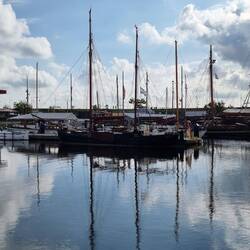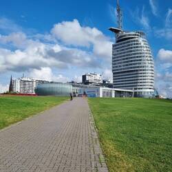 ....und nicht nur am Morgen, sondern den ganzen Tag🥵. Offenbar ahnten wir schon Böses, denn wir verliessen das Zimmer bereits um 6.30 Uhr. Und tatsächlich - wir holten die Velos aus der Tiefgarage und was am Abend vorher noch bein-stein-hart war, war nur noch Pfluder. Mein Pneu😡. Also musste Theo wieder den Schlauch wechseln, bevor wir losfahren konnten. Die Landschaft war wirklich flach, aber in der Richtung, in die wir fuhren, wurde es immer dunkler und dunkler. Wir fuhren zügig, der vermaledeite Pneu hielt auch (noch), aber irgendwann war dann wieder fertig. Verflixt, was ist hier denn nur los? Ich bringe dieses Rad mal noch um😡. Also, wieder Schlauch wechseln, weiterfahren, wieder hielt es eine Zeitlang. Dummerweise wollten wir dann endlich mal etwas trinken und kehrten mangels Beizen ganz kurz bei Mc Donalds ein. Da war der Reifen noch ziemlich ok. Wir fuhren etwa 7 km weiter, dann ging es nicht mehr, weshalb wir uns entschlossen, zurück zu radeln und mit dem Zug die restlichen 40 km von den 110 geplanten zu fahren. Es wurde immer schlimmer mit der Luft im Pneu, bald musste Theo alle 500m pumpen, ich fuhr dann möglichst schnell weiter, aber nach 500m war wieder Schluss. So ging es ein paar Mal, bis beim pumpen das Ventil abbrach. Das wars dann! Ich durfte 3,5 km bei strömendem Regen - ja, der kam dann genau dann, als wir den McDonalds verliessen - zu Fuss das Velo schieben, während Theo den Weg zum Bahnhof radelnd erkundigte und mich bei den Abzweigungen jeweils erwartete. Wir kamen dann doch noch zwar pflotschnass, aber doch heil ausser meinem Pneu beim Bahnhof an und eine dreiviertel Stunde später fuhr der Zug nach Bremerhaven. Vom Bahnhof hatten wir nochmals eine viertel Stunde Fussmarsch zum Hotel. Aber wenigstens war das Hotel super und Theo konnte nun ein Fahrradgeschäft ausfindig machen, das genau meinen Pneu - Schwalbe Marathon plus unplattbar🤣🤣😭 - hatte. Er fuhr dann wieder mal mit seinem Velo und meinem Rad auf dem Buckel zum Velomech. Und da wurde das Übel für die vielen Platten gefunden - das Felgenband. Da dieses nicht mehr das jüngste war, hatte es sehr scharfe Kanten, die jeden Schlauch beim Fahren durchrieben. Darum hielt der Pneu auch am Anfang noch länger. Nun bekam mein Rad also ein neues Felgenband, einen neuen Pneu und einen neuen Schlauch! Und wenn ich morgen wieder einen Platten habe, dann werfe ich das Velo in die Nordsee. Da waren wir nämlich heute schon. Das Schiffsmuseum war sehr eindrücklich und auch das Segel und das Ei sahen fantastisch aus. Was überhaupt nicht fantastisch war, wir wollten nach diesem schrecklichen Tag endlich gemütlich zu Abend essen, da wir durch das ganze Theater und mangels Restaurants kein Mittagessen hatten, aber wir fanden nicht EIN normales Restaurant. Persisch, Arabisch, Türkisch wollten wir nicht, über einen Chinesen hätten wir uns gefreut, aber eine normale Beiz zu finden, die heute offen hat, war unmöglich. So müssen wir uns heute ohne Essen begnügen, Theo fand dann aber noch eine ganz passable Lösung. Inzwischen ist die Flasche leer und ich mit meinem Bericht fertig😆Leia mais