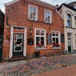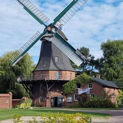 Die stammen noch aus dem 19. Jahrhundert. Früher wurden viele Straßen in Friesland mit Klinkern gepflastert. Dies war eine wichtige Industrie für die umliegenden Ziegeleien und schuf ein Netz von gut befestigten Verkehrswegen zwischen den Dörfern. Also, dann mussten wir vorallem in den Dörfern auf diesen Klinkersteinen fahren. Meistens sind die Trottoirs und der sich darauf befindliche Radweg nicht eben, sondern neigen sich abwärts der Strasse zu. Das ist schon anspruchsvoll zum fahren, vorallem mit Gepäck, man muss aufpassen, dass man nicht rutscht. Hätten sich die sich am Horizont auftürmenden schwarzen Wolken früher entleert, hätten wir auf die Strasse ausweichen müssen. Gut, irgendwann hatten wir auch das hinter uns und es ging ins eigentliche Moorgebiet. Und wer jetzt noch sagt, wir würden nur auf geteerten Strassen fahren, der soll sich die Bilder genau anschauen. Aber die Gegend war sehr spannend und schön - eben noch richtige Natur. Bei einem Aussichtsturm konnte man von oben das Lengener Meer betrachten, ein kleiner See mitten im Moorgebiet. Und wisst Ihr, was Mooraugen sind? Mooraugen sind kleine, dunkle Moorseen, die sich im Zentrum eines Hochmoors bilden können. Die Hinweistafeln verhalfen uns zu einigen interessanten Informationen, auch was es für Tiere hat. So ist der Kranich der Glücksbote im Lengener Meer. Spannend. Leider haben wir keinen gesehen. Hoffen wir, dass wir heute trotzdem im Lotto gewinnen🤣. Es ging also durch das Moor - gestern fuhren wir schon durch Moore - weiter und wir kamen wieder auf geteerte Radwege. Wäre nicht dieser fürchterliche Wind gewesen, wären wir viel schneller in unserem heutigen Ziel eingetroffen. Es fing nämlich leicht an zu tröpfeln, wurde immer stärker, aber immer noch nicht heftig. Und wir fuhren dann nach der Durchfahrt durch einen nicht endenwollenden Vorort von Leer ein. Schön brav hintereinander auf dem bezeichneten Veloweg und nichts ahnend sahen wir ein Auto vor uns, das in die Busbucht einfuhr. Der Fahrer stieg aus und hielt uns an. "ICH KENNE EUCH"! Häääää? Ich schaute ihn an und ja, er kam mir bekannt vor. Ja, es war der Partner einer ehemaligen Arbeitskollegin, die nun hier oben wohnt. Die beiden waren vor etwa zwei Jahren für eine Woche unsere Gäste! So ein Zufall, dass wir genau zu dieser Zeit auf genau dieser Strecke unterwegs waren - wir hätten eigentlich eine andere Strecke nehmen müssen - und dass Peter genau zu diesem Zeitpunkt an uns vorbeifuhr. Aber schön, lieber Peter, haben wir Dich wieder mal getroffen! Das hat uns sehr gefreut. Inzwischen wurde der Regen stärker, wir fuhren den letzten Kilometer ins Hotel und grade in der Lobby angekommen, fing es an, wie aus Kübeln zu schütten! Später wurde es aber wieder sonnig und warm - nur der Wind wurde immer stärker, man musste das Glas beim draussen sitzen festhalten!Okumaya devam et