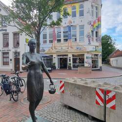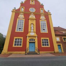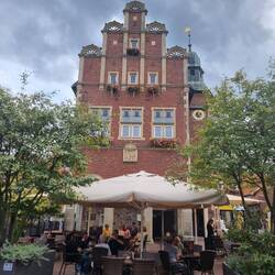 Der etwa 150 km lange Abschnitt von Wesel nach Meppen wird durch Amprion, der 31,1 km lange Abschnitt von Meppen nach Dörpen durch TenneT TSO geplant und errichtet. Teile der Leitungsstrecke werden im Rahmen eines Pilotprojekts als Erdkabel ausgeführt. Spannend, diese Erklärung und unsere Neugierde war befriedigt. Weiter ging es bei einigen Schleusen vorbei. Ein paar Kilometer vor Meppen wartete das Frachtschiff Lena, bis die Schleusenkammer gefüllt ist und sie einfahren und dann ihren Weg fortsetzen kann. Wir fuhren heute von Leer bis fast Meppen mangels Cafés oder Restaurants durch. Und wenn Ihr Euch wundert, dass wir anstelle der angesagten 100 km pro Tag "nur" zwischen 70 und 90 km fahren, so ist es der Tatsache geschuldet, dass wir beschlossen, statt Ruhetage zu verbraten und dann 100km oder mehr zu fahren, die Routen kürzer zu machen. Zum einen lernen wir mehrere Städte kennen, zum anderen achten wir darauf, dass wir spätestens um zwei im Hotel sind, da nachher ein so starker Wind aufkommt, dass das Radfahren keinen Spass mehr macht und es ein unnötiger Kräfteverschleiss wäre. Und im übrigen hatten wir vor genau drei Wochen unseren ersten und bis jetzt einzigen Ruhetag - in Dresden. Seither fahren wir jeden Tag zwischen 60 und 90 Kilometer. Auch heute ergab die Distanz wieder knapp 80 km. Es ist nicht so, dass wir genau wie die Strassen auf direktem Weg fahren, wir wählen immer aus, ob wir durch Naturgelände oder auf geteerten Radwegen fahren wollen. Gegen Ende der Tour fuhren wir 12 km auf einem tollen Radweg direkt der Ems entlang bis ins Städtchen Meppen. Wunderschön und gepflegt präsentierte sich die Altstadt und auch hier genossen wir es, Meppen zu erkunden.Okumaya devam et