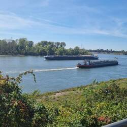 Bei bedecktem Himmel, aber wenigstens keinem Regen, starteten wir nach einem ausgezeichneten Frühstück im Hotel Weisser Schwanen in Braubach. Dieses Städtchen und vorallem das Hotel, das sehr viele alte Stücke ausstellt und auch als Hotel und Museum geführt wird, ist absolut zu empfehlen. Gleich nach Braubach entdeckten wir Mountain Sheeps - nein, natürlich nicht - Bergziegen aber auch nicht, dafür normale Ziegen in den Felsen links von uns. Die sorgen dafür, dass die Felsen nicht ganz verbuschen und haben erst noch sehr gutes Futter🐐. Der Rheinradweg führt ausnahmslos dem Rhein entlang, ist fast immer (ausser in den Dörfern) in einem guten Zustand und lässt eigentlich nichts zu wünschen übrig. Die Wolken wollten sich nicht recht verziehen, es war recht kalt und wir waren froh um die Jacken. Und trotz rheinaufwärtsfahren überholten wir immer wieder "Ledischiffe" (ich kenne die nur unter diesem Namen), wir waren also schneller. Die ganze Strecke, die wir heute fuhren, ist unter Kulturlandschaft am Mittelrhein, Teil des Weltkulturerbes der UNESCO bekannt. Viele Burgen säumen den Rhein links und rechts. Wir wussten, irgendwann auf halber Strecke muss die Loreley kommen. Und sie kam - zuerst die Nixe als Statue im Rhein, dann links von uns der besagte Felsen. Die Legende erzählt: die schöne Nixe des Rheins, die gefährliche Loreley, die auf dem Felsen oben sitzt, erscheint oft den Schiffern, kämmt mit goldenem Kamm ihr langes flachsenes Haar und singt dazu ein süßes betörendes Lied. Mit ihrem wunderschönen Gesang lenkte sie die Schiffer so sehr ab, dass diese in der gefährlichen Strömung nicht mehr auf den Kurs achteten und die Schiffe an den Felsriffen zerschellten. Gleich unterhalb des Felsens steht auch der Schilderwald mit unserem Alptraumwort: UMLEITUNG😲. Nachdem wir die Loreley unversehrt umfahren hatten, ging es weiter Richtung Rüdesheim. Wir wollten eigentlich in Mainz übernachten, aber zum einem war nirgends mehr etwas frei, da zur Zeit eine grosse Messe stattfindet und zum anderen dadurch die Zimmer bis 1000 EUR pro Nacht kosten. Da ziehen wir es vor, einen Tag etwas kürzer zu fahren und dafür morgen etwas länger. 25 km vor Rüdesheim brauchte Theo dringend einen Kaffee und wir machten Halt in der Jugendherberge, da auch hier nichts anderes offen war und gemäss der Bedienung in der JH alle Restaurants schliessen. Weiter ging es dann, kurz darauf standen zwei E-Bike Fahrer auf dem Radweg (etwa 75 und 73 Jahre alt🤣) und ICH HASSE DAS - die hängten sich uns an. Wir steigerten dann ohne Worte unser Tempo, aber sie hielten 10 km lang tapfer mit😆. Dann verloren wir sie aus den Augen, aber kurz vor Rüdesheim waren sie wieder hinter uns (wir hatten natürlich noch Fotohalt gemacht). Wir bogen dann zu unserem Hotel ab, da riefen sie " oh schade, jetzt haben wir unsere Zugmaschinen nicht mehr"😲. Zwar nervig, die im Schlepptau, so nervig wie der Wind, der recht stark von vorne kam, aber ein Kompliment, wenn sich E-Bike Fahrer an uns hängen!