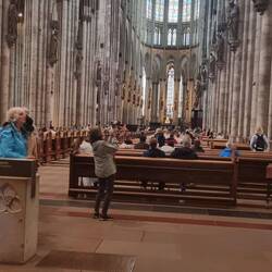 ....und ein ereignisreicher Tag😄. Als wir früh am Morgen das Hotel Ott verliessen, erstrahlten gegen Düsseldorf gleich zwei Regenbogen, was erklärlich war, denn dort türmten sich schwarze Wolken auf. Wir frohlockten, gegen Süden war es hell und es sah nicht nach Regen aus. Aber kaum waren wir ein paar Meter gefahren, fing es an zu tröpfeln, dann wurde es immer mehr und zum Schluss strätzte es richtig. Und wir waren vor Leverkusen, hatten wieder jede Menge Umleitungen und man führte uns statt wie geplant aussen rum direkt durch die Stadt! Es schiffte weiter, wir quälten uns durch den Verkehr, aber unterstehen lag nicht drin, hatten wir uns doch mit meiner langjährigen lieben Freundin Baronesse Tilla v.d.G. in einem Café beim Kölner Dom verabredet. Wir kamen dann auch rechtzeitig an und bekamen endlich den ersten Kaffee. Tilla traf auch ganz pünktlich um 10 Uhr ein und es gab ein grosses Hallo, hatten wir uns doch länger nicht mehr gesehen. Wir schwelgten in Erinnerungen und frischten unsere gemeinsamen Erlebnisse auf. Sie war lange Zeit als Gründerin und Geschäftsführerin in einer bundesweiten Denkmalschutzorganisation tätig und wird ab nächstem Jahr in der deutschen Burgenvereinigung wieder eine verantwortungsvolle und führende Funktion einnehmen. Was Theo und ich nie vergessen werden, ist, als wir am 14. August 2010 heirateten, war Tilla gerade aus Anlass des 60jährigen Geburtstages von Prinzessin Anne bei Charles und der Familie eingeladen. Sie wäre gerne an unsere Feier gekommen. Leider ging Charles vor, aber Tilla schickte uns von der königlichen Familie die herzlichsten Glückwünsche! Was diese Frau geleistet hat und heute noch leistet, ist unbeschreiblich. Die Tage mit ihr auf der Marksburg, mal mit meinen beiden Söhnen, dann auch alleine und die vielen Ausflüge mit dem deutschen Adel und die etlichen Besuche in den verschiedenen Burgen und Schlössern mit Besichtigung der Privatgemächer werde ich nie vergessen. Nachdem wir uns verabschiedet hatten, huschte ich noch schnell in den Kölner Dom. Das Innere war für mich eher ernüchternd. Was ich meine, seht Ihr auf den Fotos. Wir mussten also wieder aus Köln raus, was gar nicht so einfach war, denn leider - und das haben uns einige deutsche Radfahrer bestätigt - sind die Radwege ziemlich schlecht angeschrieben. Schlussendlich befanden wir uns aber dann wieder auf dem Rheinradweg, der oh Wunder, uns keine Sperrungen mehr bescherte. Wir fuhren auf der linken Seite des Rheins, vorbei an tollen Villen und protzigen Jachten und dann, ja dann kam er wieder, der Regen. Zuerst zogen wir unsere nun trockenen Regenjacken wieder an, aber es half nichts. Der Regen wurde immer stärker und wir flüchteten schlussendlich in ein kleines Restaurant, um wenigstens nicht wieder drecknass zu werden. Leider prasselte das Wasser inzwischen wie ein Wasserfall von oben runter, unsere Velos und die Satteltaschen tropften, da wir sie nirgends unterstellen konnten. Wenigstens sassen wir im trockenen. In der Hoffnung, dass es vielleicht irgendwann mal aufhören würde und wir eh kein Mittagessen gehabt hatten, bestellten wir uns eine Portion Calamari mit Knoblauchsauce. Wen kümmert es, wenn wir beim radeln vor uns herstinken😆. Wir beobachteten die Fähre von Mondorf, die unermüdlich hin und her fuhr, manchmal zwei Autos, manchmal sogar vier, aber vorallem Schüler mit den Velos transportierte, die nach Hause wollten. Die Regentropfen wurden immer weniger und wir benutzten die Gelegenheit, loszufahren in der Hoffnung, dass es trocken würde. Um in Bonn auf die andere und somit für unser Ziel richtige Seite zu gelangen, mussten wir mittels einer sogenannten Schnecke - was für ein Krampf bis ganz nach oben - die grosse Brücke überqueren. Auch hier wieder - Irrfahrt durch die Stadt - aber schlussendlich fanden wir den Rheinradweg wieder. Und nun ging es bei zaghaftem, aber warmem Wetter zügig weiter Richtung Bad Honnef. Vorbei am sehr berühmten Drachenfels von Königswinter und unterhalb dem Schloss Drachenburg. Bald erreichten wir dann Bad Honnef, wo wir unser Hotel gebucht hatten. Wir mussten dann zügig duschen und umziehen, denn eineinhalb Stunden später hatten wir uns mit einem Freund und dessen Partnerin zum Abendessen verabredet. So verlief dieser Tag sehr ereignisreich in jeder Hinsicht. Und hurra, morgen gibts schon um halb sieben Kaffee und Frühstücksbuffet😁Okumaya devam et