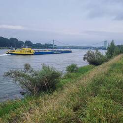 ..... nein, natürlich nicht, aber dieses Lied war mir die ganze Zeit im Ohr🎵😄. Dabei war der heutige Tag der, an dem wir die A.....karte gezogen haben. Es fing mit dem Hotel an. In Wesel hat es fast keine Hotels, also buchte Theo in einem, das ganz gut aussah, aber sich dann als eher nicht so gut entpuppte. Interessanterweise haben die aber ziemlich viele Gäste zum übernachten bekommen. Wir erhielten sogar ein Appartement mit Küche und Esstisch. Wenn wir so etwas unseren Gästen präsentieren würden, hätten wir nichts mehr zu tun. Das Besteck zum Essen zum Beispiel war in einer Kiste unter der Spüle, wo normalerweise der Abfallkübel ist🤮. Billig war es auch überhaupt nicht! Nun genug, ich war jedenfalls froh wie selten, dass wir die Unterkunft morgens schon um halb sieben verlassen konnten, einmal mehr ohne Kaffee. Und da dies für Theo und für mich fast nicht zum aushalten ist, fuhren wir 7 km weit und fanden dank Internet eine offene Bäckerei/Café. Endlich gab es Kaffee und Brötchen und für jeden einen halben Zuckerschub (Zimtschnecke). Wie gut wir das noch brauchen könnten, ahnten wir überhaupt nicht. Wir fuhren dann zuerst über den Wesel-Datteln-Kanal, weiter durch die Rheinaue Walsum, leider nicht dem Rhein entlang, da es keinen Weg, jedenfalls keinen für uns fahrbaren, dem Rhein entlang gibt. Entlang der riesigen Metallindustrieanlagen, wo immer noch, auch am Sonntag, gemalocht wurde, trafen wir dann in Duisburg ein. Wir kamen direkt mitten in den Kuchen des Ironman Duisburg 2025! Und was das heisst, könnt Ihr sicher erahnen. Überall gesperrt, kein Durchkommen, besonders wir mit unseren schweren Rädern und dazu die Taschen links und rechts..... wir wurden weiss nicht wie oft umgeleitet, mussten kilometerlange Umwege fahren.... zum Glück haben wir neonorange Warnwesten an, so fand ich mein Männlein immer wieder, wenn er mal schneller wie ich durch die vielen Leute kam. Nur einen Nachteil hat das orange Teil - einmal dachte ich in den letzten Tagen, was bastelt Theo jetzt dort an der Leitplanke? Und heute waren die Abfallmänner in Düsseldorf unterwegs mit ihren Karren (ja, auch am Sonntag wird der Müll eingesammelt) und da die auch wieder orange trugen, fuhr ich einem hinterher, dachte, es wäre Theo🥵. Ein greller Pfiff, von dem ich im Laufe der Jahre gelernt habe, dass er mir gilt, brachte mich dann wieder auf den rechten Weg🤣. Wir konnten also nach Duisburg endlich dem Rhein entlang Richtung Düsseldorf fahren, wo wir zu Mittag assen. Beim Losfahren kam uns ein Krankenwagen entgegen. Gleich neben der Gasse, wo wir fuhren, lag eine Person auf dem Boden, das Rad daneben und natürlich trug man keinen Helm. Naja, was sagen wir immer? Wer kein Hirn hat, braucht auch keinen Helm. Darum tragen wir immer einen😆. Das gleiche sahen wir kurz darauf nochmals, auch Sturz mit Velo, auch keinen Helm und auch wieder die Ambulanz. Weiter ging es, wir dachten wir schaffen die 23 Kilometer bis ins Hotel von Familie Ott ohne h locker. Aber dass wir wieder wegen eines Festes an einen gesperrten Rheinradweg kommen würden, damit hatten wir nicht gerechnet. Und dass wir deswegen wieder kilometerlange Umleitungen fahren müssten, damit auch nicht🙄. Das wird ja nun wohl ein Ende haben mit diesen Festen. Aber nein, nochmals eines und das selbe wie vorher😨. Dann ging es noch auf einer Rüttelpiste zwei Kilometer weiter und endlich kam der Pferdehof und daneben das Hotel Rheinblick, das eben von der Familie Ott bewirtschaftet wird und wirklich wunderschön am Rhein liegt mit einer tollen Terrasse. Hier werden wir den Abend verbringen und nach dem roten Mond Ausschau halten. Ach ja, noch etwas zum Schluss: ich wollte in kein Hotel mehr, wo es keinen Lift hat! Die beiden Hotels gestern und heute haben keinen Lift😡, zum Glück waren oder sind wir immer im 1. Stock😲Okumaya devam et