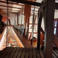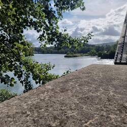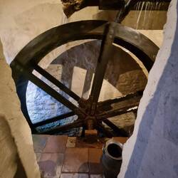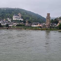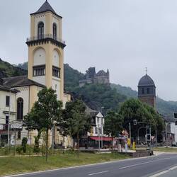 Gut - wir kamen also in Braubach an, es regnete immer noch Bindfäden und bis wir die 1,2 km bis zum Hotel geschafft hatten, waren wir auch wieder pflotschnass. Unser Zimmer war leider noch nicht fertig, so machten wir uns auf die Suche nach einem Café oder Restaurant. Aber: Dienstag = alles zu. So kehrten wir zum Hotel zurück und bekamen ein anderes Zimmer, wo wir unsere Kleider trocknen konnten. Nun würden wir gerne das Strässchen zur Burg hinauf radeln, falls es irgendwann nicht mehr regnet. Und tatsächlich hörte der Regen am Nachmittag um 15 Uhr wirklich auf, worauf wir unsere Räder schnappten und zur Burg hinauf trampten. Die Burg ist ja ziemlich weit oben, aber mit den Velos ohne Gepäck schafften wir das locker - wir sind uns nun ja gewohnt🥵😆. Da ich die Burg schon ziemlich gut kenne, überredete ich Theo, dass wir eine Führung mitmachen sollten. Der Führer, ein ausgezeichneter Guide, schloss mit einem grossen Schlüssel das Tor auf, worauf ich ihm zu seiner Verblüffung sagte, dass ich diesen Schlüssel auch schon eine Woche benutzt hätte😲. Der Rundgang durch wohlbekannte Räume weckte viele Erinnerungen, wie zum Beispiel bei den Kanonen. Da sehe ich immer noch meine Jungs, wie sie damals auf den Kanonen sassen oder in der Küche, wo es ganz normal ausschaute, wenn man aber eine Foto machte, war nachher auf dem Bild beim Fenster ein Geist zu bemerken. Es gab so viel zu sehen, Theo war total fasziniert. Nach einer kleinen Erfrischung sausten wir wieder den Berg runter, um viele Eindrücke reicher.Okumaya devam et
