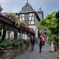 Leider konnten wir das Hotelzimmer erst drei Stunden später beziehen, weshalb wir uns die Zeit in Rüdesheim im Städtchen um die Ohren schlagen mussten. Hätte die Sonne geschienen, wären wir mit der Seilbahn zum Niederwaldtempel raufgefahren. Aber da wir das letztes Jahr bereits bei traumhaftem Wetter mit unserer Silver Bird Gruppe gemacht hatten, brauchten wir das heute nicht. Wir haben Rüdesheim nun ganz genau erkundet - viele Beizen (das freut Theo) und ganz viele Souvenirläden, aber keine Bäckerei oder sonstiger Lebensmittelladen - ja, und natürlich ganz viele Touristen!Okumaya devam et