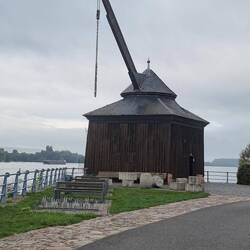 Heute war der Wettergott uns wieder mal nicht unbedingt wohlgesonnen. Zwar regnete es am frühen Morgen bei der Abfahrt nicht, aber der Nebel hing tief am gegenüberliegenden Ufer. Wir waren schon froh, dass wir trocken starten konnten. Übrigens, die kleine Kabinenbahn, von der ich gestern gesprochen habe, hätte einem zu einem tollen Aussichtspunkt gebracht. Ich habe Euch ein Foto aus einem früheren Besuch, als wir dort oben waren, rausgesucht, damit Ihr seht, wie es wäre wenn.....