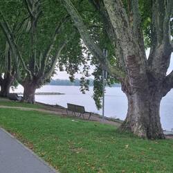 Das Zimmerfenster ist offen, die Glocken läuten den Feierabend ein, der Rhein zieht still Richtung Rotterdam - und wir haben super gut gegessen und geniessen jetzt schon im Bett (19 Uhr) den Abend. Heute war ein besonderer Tag - früh am Morgen nach einem tollen Frühstück konnten wir seit langem ohne Jacke fahren - die Oberrheinische Tiefebene, vor allem naturräumlich auch Oberrheinisches Tiefland oder seltener Oberrhein-Untermain-Senke genannt, ist ein etwa 300 km langes und bis zu 40 km breites Tiefland am oberen Mittellauf des Rheins (dem Oberrhein), das sich zwischen den Städten Basel (Schweiz) im Süden und Frankfurt am Main (Deutschland) im Norden erstreckt. Dass es da immer warm ist, spürten wir schon am frühen Morgen. Wir fuhren also los, frohlockten, denn der Radweg direkt am Rhein war geteert. Aber nach zwei Kilometern hörte der Teer auf und es war nur noch Kiesweg. Dazu blies der Gegenwind in einer Heftigkeit, die uns beinahe dazu veranlasste, das Velo in den Rhein zu werfen🥵. Und dieser Kiesweg, mal schlechter, mal besser, aber meistens schlechter verliess uns 60 km lang nicht. Wir hatten mal Lust auf eine Pause, fragten eine nette junge Dame, wo es denn ein Café hätte und sie sagte uns, dass im Dorf Neuenburg am Rhein auf dem Hügel😨 das Café Heitzmann ganz sicher offen hätte. Auf dem Hügel? Sie sagte uns dann aber auch, dass es für Radler und andere einen Lift geben würde. Wow - so gut! Ich liess Theo und die zwei Velos beim Marktplatz aussteigen und fuhr noch zwei Stockwerke weiter hinauf, musste dann auch noch zwei Treppen steigen, bevor ich mit einer grandiosen Aussicht belohnt wurde. Auf der einen Seite Sicht bis Fribourg und Murten, andere Seite die Vogesen, weiter zum Schwarzwald - beeindruckend! Weiter ging es dann durch Naturschutzgebiete. Die Autobahn hörte man von weitem oder dann näher, rechts floss der alte Rhein, ein Idyll ohne Ende - leider fast ohne Ende. Die Sonne brannte vom Himmel, das Wasser war alle, die Zunge hing fast bis in die Speichen - aber schön war es trotzdem. Da wir wieder so früh unterwegs waren, niemanden trafen, erschreckten wir nur einen Kormoran, dem der Fisch buchstäblich im Hals stecken blieb, einen winzig kleinen herzigen Frosch, der sich mit einem Satz ins Gras rettete, einen Hasen, der sich in grossen Sprüngen in den Wald verzog und dann noch eine Eule, die wir wohl aus dem Schlaf holten! Kurz vor Weil am Rhein - mein Schatz fuhr schon in vollem Tempo um die Kurven, entdeckte ich ein Restaurant, das offen hatte. Meine Schreierei hatte denn auch Erfolg, wir kehrten ein und bestellten uns zwei alkoholfreie Bier und je einen Wurst/Käsesalat. Da der General, sprich die Wirtin, schon zwei Gäste hatte, war sie mit uns zusätzlich völlig überfordert. Dies zeigte sich auch am Ton und später beim Umgang mit acht E-Bike Fahrern, die völlig erledigt, auch Platz nahmen. Naja, Gastgeber sein ist nicht jedem gegeben. Weiter ging es Richtung Basel. Der heftige Verkehr, vorallem mit den Lastwagen machte mich schon etwas nervös. Irgendwann hatten wir auch die Stadt hinter uns - den hässlichen Turm von Roche sahen wir kurz - und weiter ging es Richtung Rheinfelden. Es war sehr heiss, die Sonne brannte herunter und auch der Durst meldete sich wieder. Dafür hatten wir die letzten 10 Kilometer endlich mal Rückenwind, den einzigen während unserer langen Reise. Sonst wurden wir immer mit Gegenwind beglückt - im Osten kam er von Norden, oben rum von Westen und dem Rhein nach von Süden🥵. Endlich waren wir in Rheinfelden DE, überquerten die Brücke zu der CH und waren gleich im Hotel, wo wir ein tolles Zimmer direkt am Rhein gebucht hatten. Nach den üblichen Verrichtungen beschlossen wir dann, zu einem Italiener essen zu gehen. Und wir bereuten es nicht. Kalbssteak mit frischen Steinpilzen, Nudeln und Gemüse und ein Kalbskotelett mit Risotto und Gemüse, alles war ein Gedicht. Wir können das Ristorante Wasserturm in Rheinfelden DE nur bestens empfehlen. Morgen nun geht es an die letzte Etappe und wir können unsere Familie und die Katze🐱 endlich wieder in die Arme schliessen💖Okumaya devam et