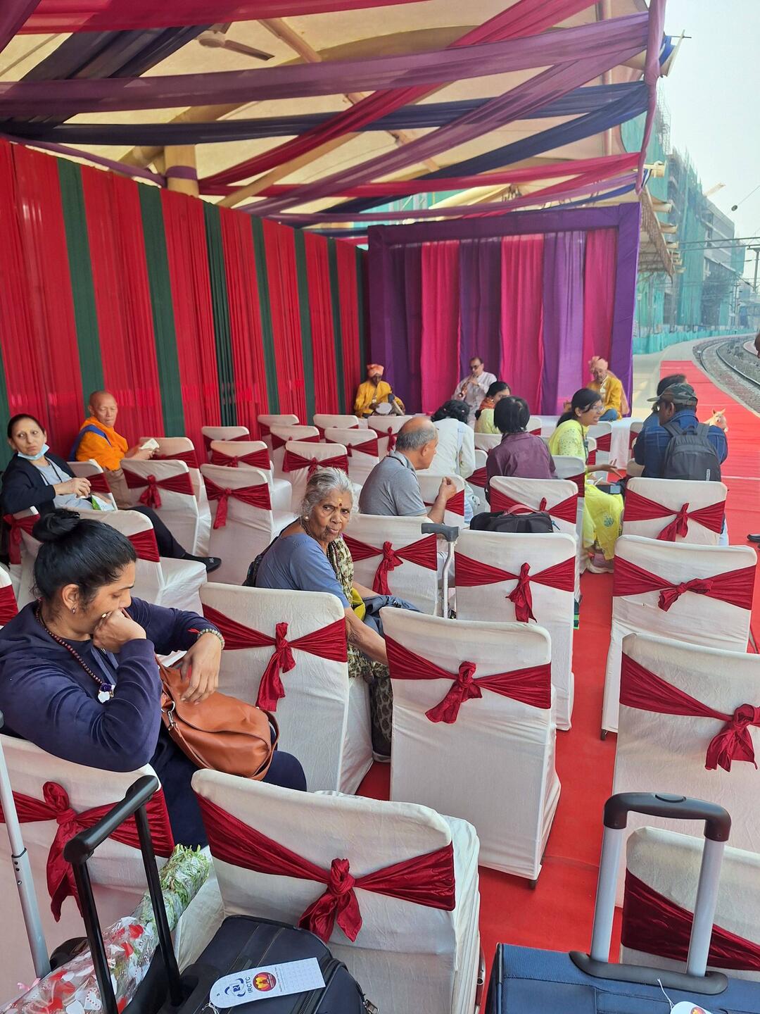 Es geht weiter. Nach einer abenteuerlichen Taxifahrt, der Fahrer wusste nicht genau wohin, bin ich am Bahnhof gelandet. Die Reise zu den Wirkungsstätten Buddhas beginnt. Der Empfang am Bahnhof istLäs mer