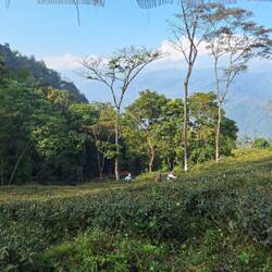 Über der einzigen Teeplantage und Manufaktur "Temi Tea" von Sikkim machen wir kurz Rast. Hier trinken wir den herrlichen "Marsalla Chai", Ein süßes Teemilchgetränk.