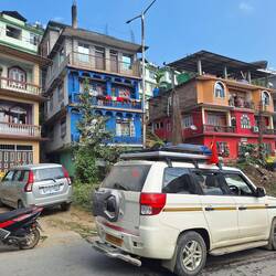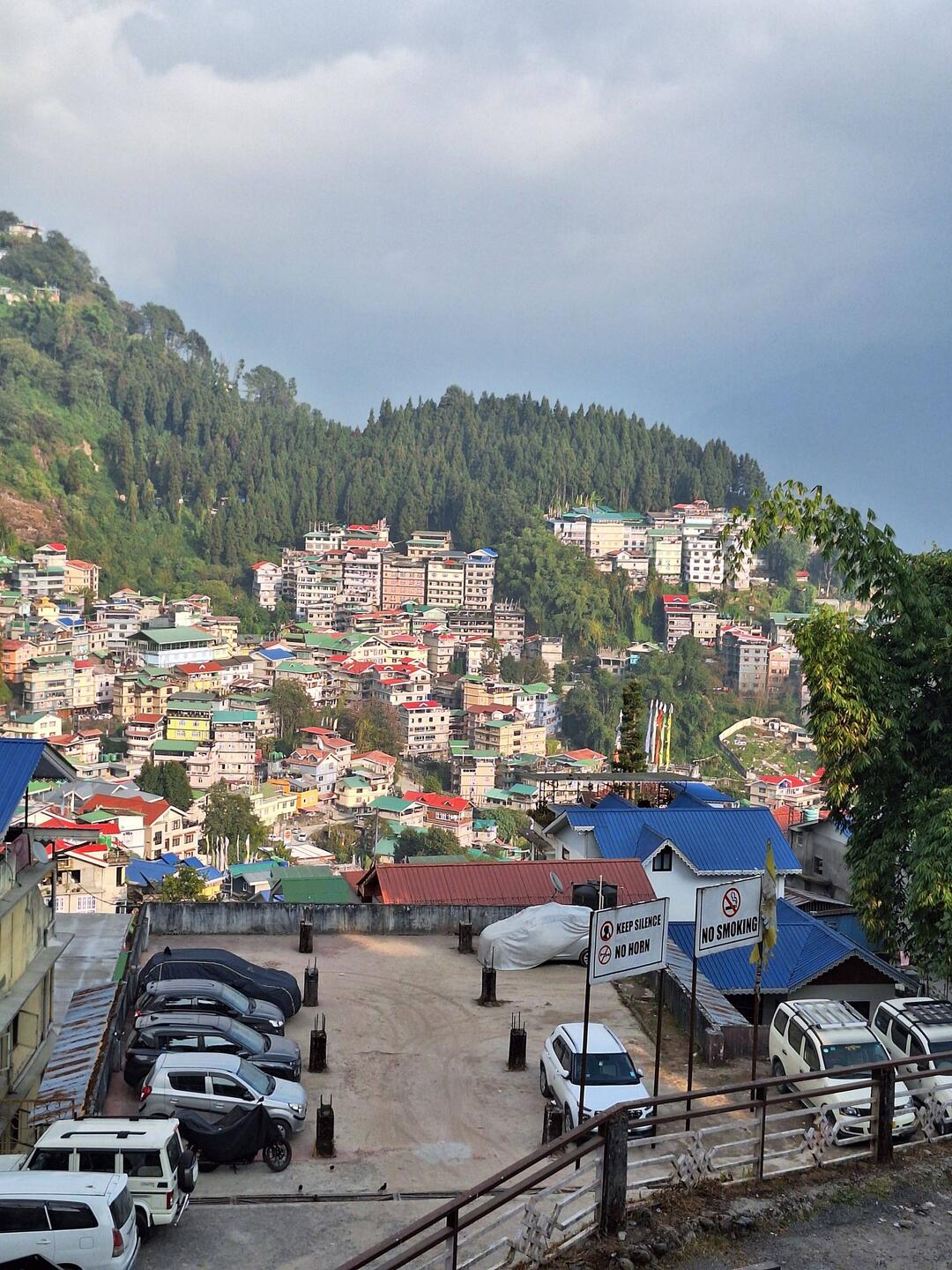 Auf die steilen Berge Sikkims schmiegt sich Gangtok, die Bezirkhauptstadt Sikkims. Hier leben etwa 100.000 Menschen vorallem vom Tourismus.
