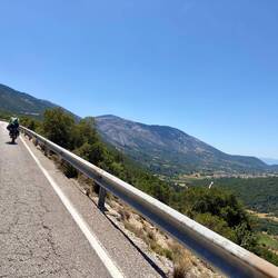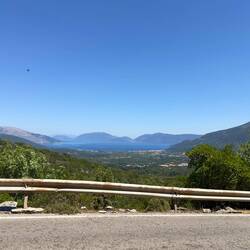 Heute fahren wir zurück Richtung Sami um morgen die frühe Fähre nach Patras zu erwischen. Ein kleines Stück geht es entlang der Küste nach Südosten, um noch ein letztes Mal diese Küstenseite zu betrachten. Auch hier gibt’s es wieder schöne Strände und Felsformationen. Leider geht die Küstenstraße nicht ganz um die Insel. Wir wären das sicher abgefahren. Stattdessen begeben wir uns ins Inselinnere und queren im Zickzack den unteren Teil Kefalonias. Wir fahren vorbei an der Ruine der St. Georgs-Burg, die natürlich auf einem Hügel liegt (unser erster kleiner Anstieg), dann im nächsten Tal vorbei an der riesigen St. Gerasimos Kirche, und wieder rauf, vorbei am höchsten Berg Kefalonias, dem Ainos Oros. Insgesamt ist es wieder eine 1.000 hm Runde. Aber mittlerweile ist das kein Problem mehr.