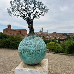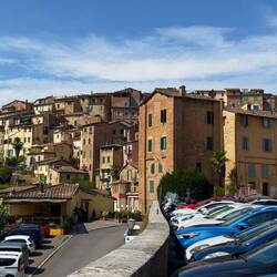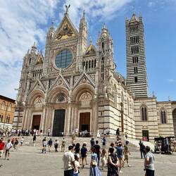 Heute ging’s Richtung Sienna, eine unerwartet tolle Stadt. Wir haben ja wirklich schon viele kleine alte Städtchen im selben Stil gesehen, aber Sienna hat schon noch etwas oben drauf gesetzt. Besonders die Kathedrale ist der Wahnsinn und kann in Bildern kaum adäquat eingefangen werden. Die Details an der vorderen Fassade sind unfassbar und vielfältig. Definitiv eine Reise wert. Die Kirche von innen haben wir leider nicht besucht. Vielleicht kommen wir noch mal ohne Räder wieder. Das geht leichter. Der Rest der Stadt hat aber auch überzeugt. Und nach einem letzten Blick über Stadt und Land fuhren wir weiter, bis zu unserem heutigen Ziel nach Poggibonsi. Ein etwas neutrales Städtchen im Val d‘Elsa (Tal des Elsa Flusses).