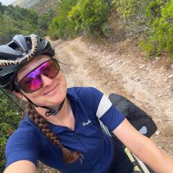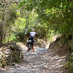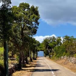 Der Teil an der großen Straße ist vorerst kurz. Wir biegen bald rechts weg um uns wieder ruhigeren Straßen zu widmen. Begleitet vom Wind, Felsen und Korkeichen geht es nach oben. In einem Dorf dass wir passieren wird ein Mann auf uns aufmerksam. Er reicht uns noch bevor wir vorbeifahren können eine riesige Tomate und sagt es sei ein „Souvenir de Corse“. Wir sind total begeistert und bedanken uns, möglicherweise etwas zu überschwänglich. Die Tomate wird vorsichtigst verpackt während wir das Abendessen in allen Details planen. Der Zahn tropft jetzt schon. Doch wir sind erst auf halben Weg zum Campingplatz. Also dann, weiter geht’s. Zum Glück geht’s jetzt bergab und wir sausen wieder mal dahin.
